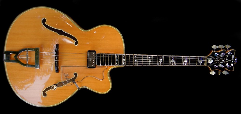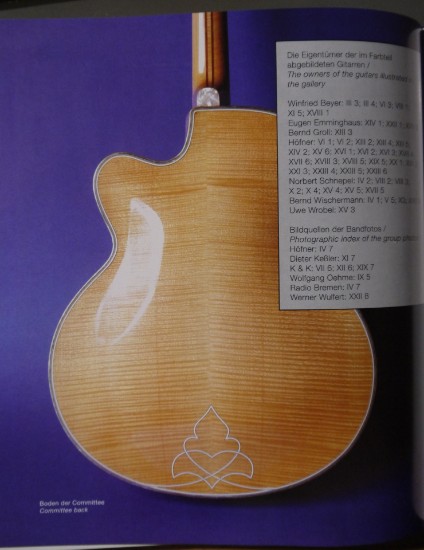 Diese Committee ist im Buch von Michael Naglav ``Höfner-Guitars Made in Germany´´ abgebildet bevor sie von mir restauriert wurde Die pickups nachträglich eingebaut, aber so dass sie jederzeit wieder ihr ursprüngliches Aussehen bekommt. Sie gehörte mahl der Familie Benker, die damaligen Firmeninhaber von HöfnerDiese Committee ist sehr selten weil ihr Korpus aus Riegelahorn ist. Die besaßen fast alle Vogelaugenahorn.