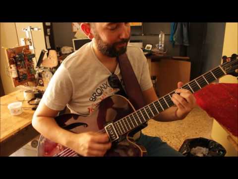 Ich endeckte in Zentrum von Athen Dimitrios Spiliotopoulos, der liebevoll handgefertigten Tonabnehmer für Archtops, Hollowbodys und Maccaferri Gypsy Gitarren produziert, die er unter dem Firmennamen Gabojo vermarktet. Solch eine Hingabe und Liebe zum Detail habe ich selten gesehen! Die Deckel werden mit Geräten gestanzt, deren Formen er selber hergestellt hat, und sie werden von Hand gewickelt. Für den Einsatz von Wachs hat er eine ganz eigene Philosophie entwickelt.