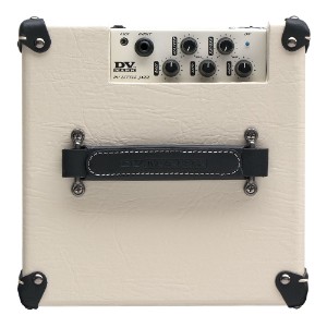 Der interne Speaker wird dabei über einen Taster an- und ausgeschaltet. Die Oberseite beherbergt neben dem Instrumenteneingang und dem Lautstärkeregler (Master) einen klassischen Dreiband-EQ, sowie ein Aux In - ebenfalls für Übungszwecke sehr hilfreich - mit dem beispielsweise Playalongs von einer externen Quelle eingespeist werden können. Im Inneren des, abgesehen vom digitalen Hall, analogen Combos schlummert ein hauseigener 8“ DV Mark Speaker mit einem Frequenzgang von 60 Hz bis kHz.